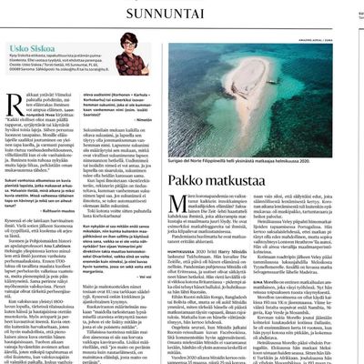 My recent travels were chronicled in the most popular newspaper in Finland
